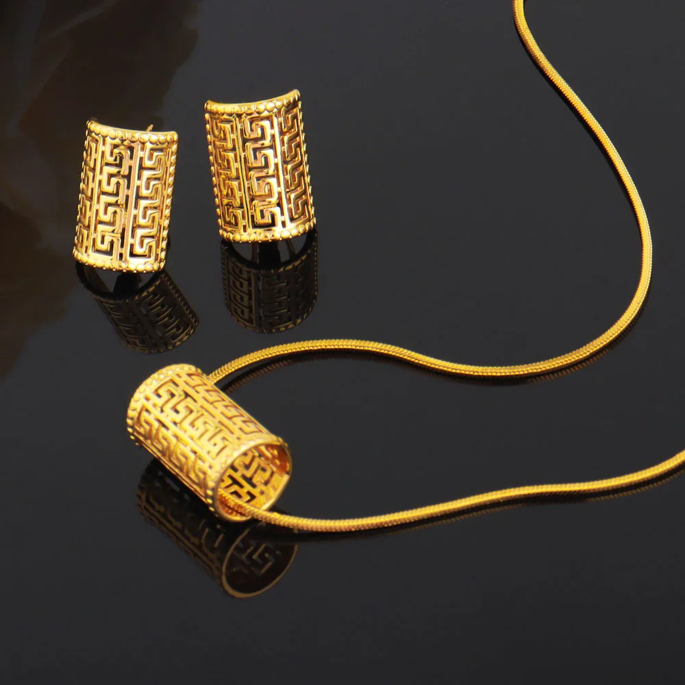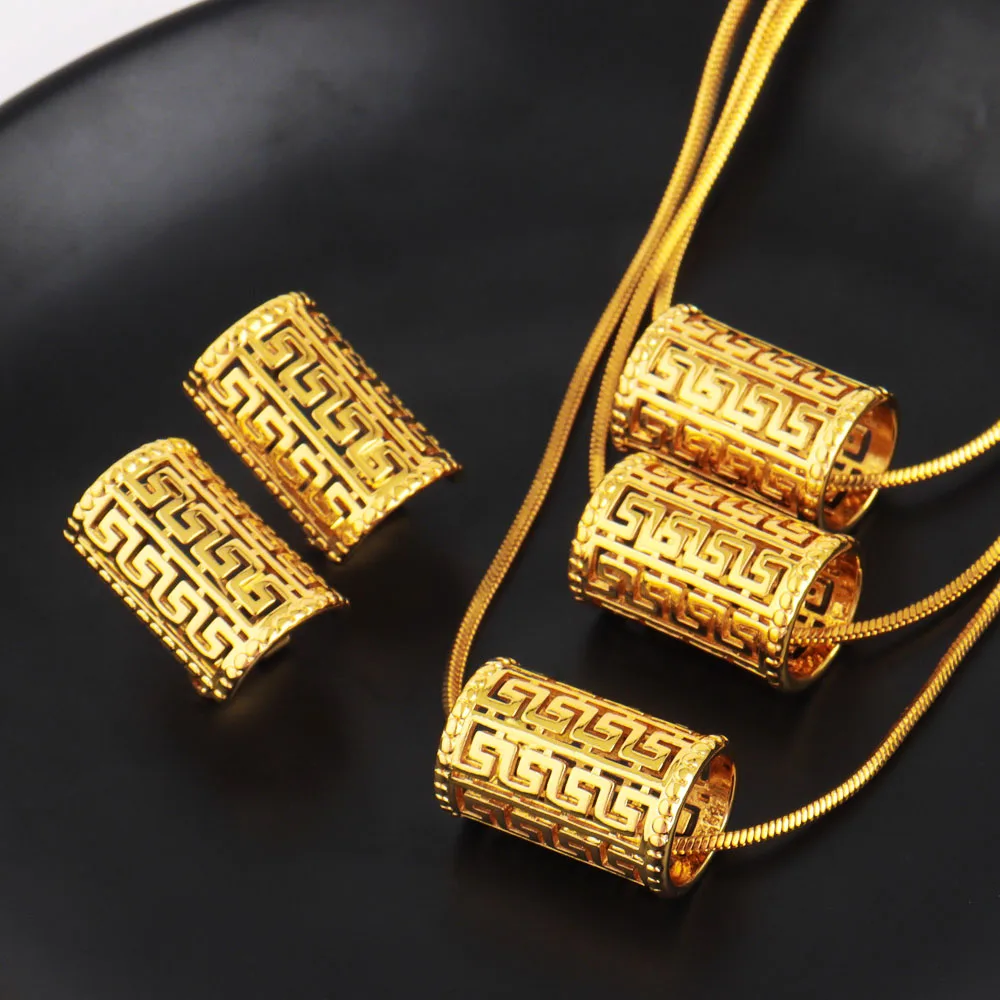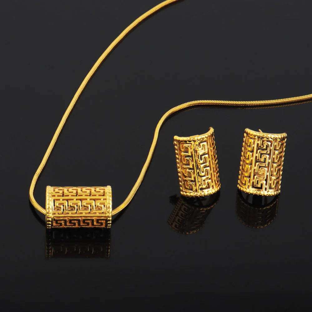 Gold Plated Copper Jewelry Set for Women Vintage Elegant Necklace and Earrings Set Clavicle Chain Romantic Jewelry Gift