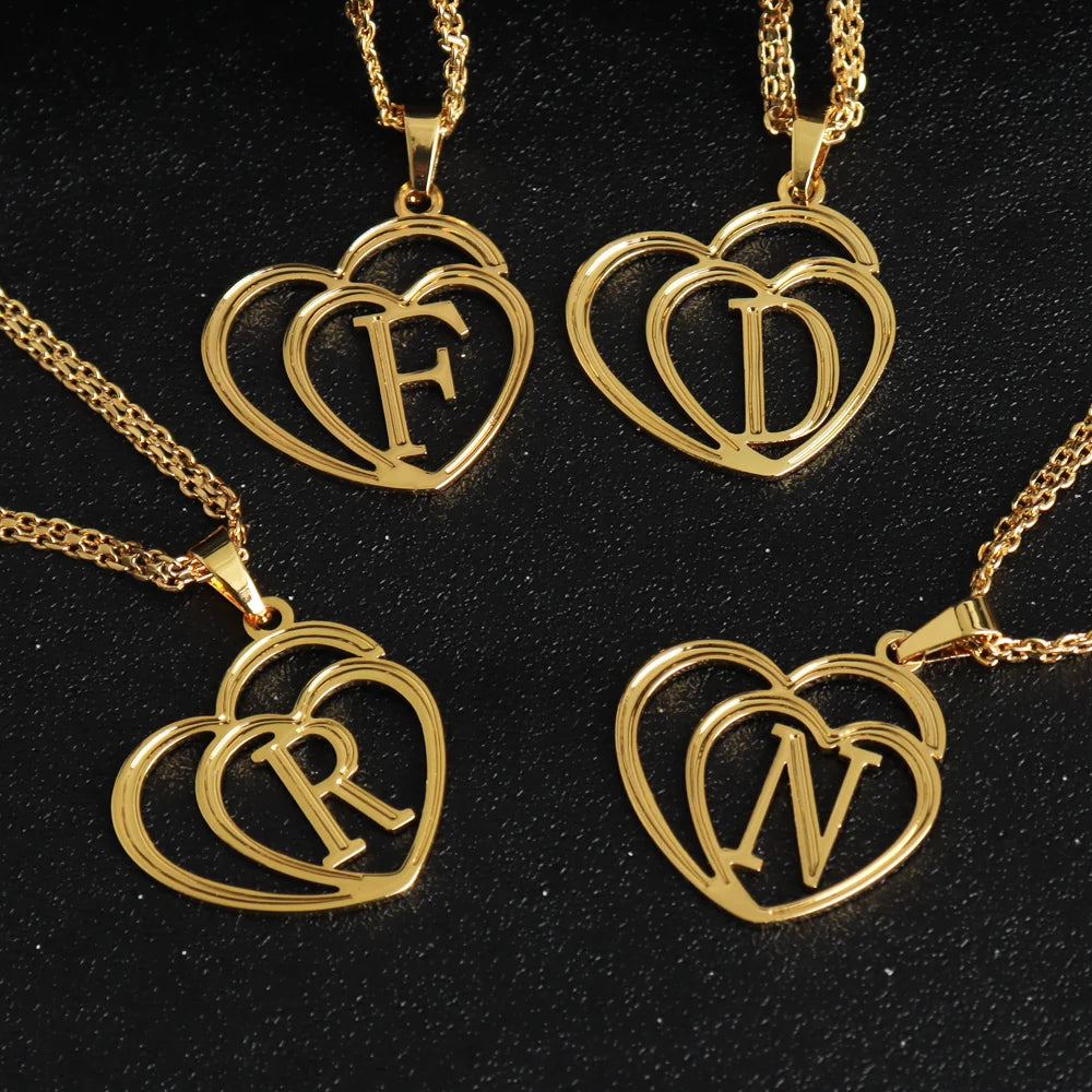 Heart letter Necklace A-Z Charm Pendant Necklace Women's Minimalism Jewelry Gift Stainless Steel Jewelry Wholesale