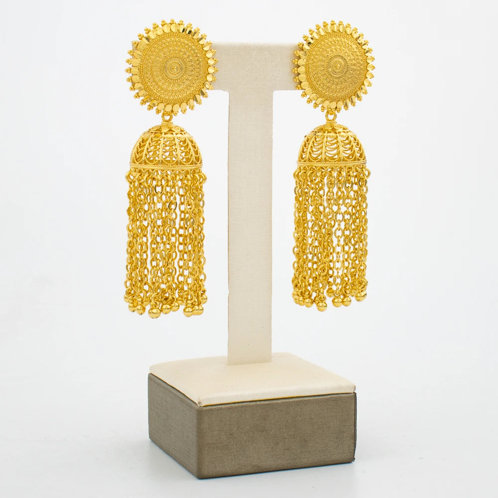 Hoop Earrings for Women 3D Design Tassel Drop Earrings 18k Gold Color Dubai African Party Earrings Accessory for Weddings Gifts