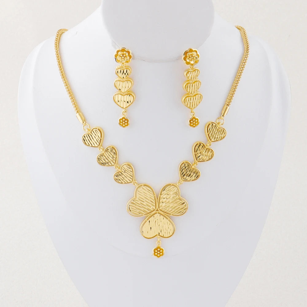 India Dubai Gold Fashion Jewelry Set Women Bridal Necklace Earring Set Nigeria Necklace Love Necklace Wedding Banquet Accessorie