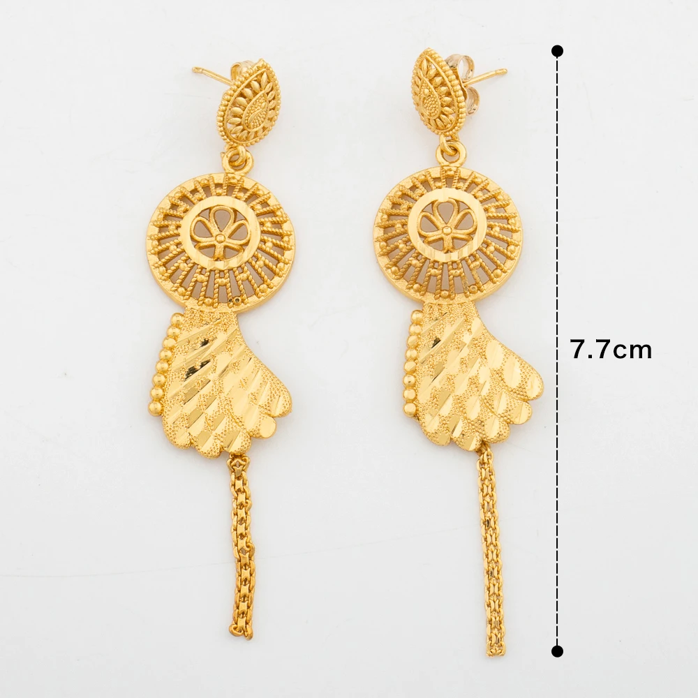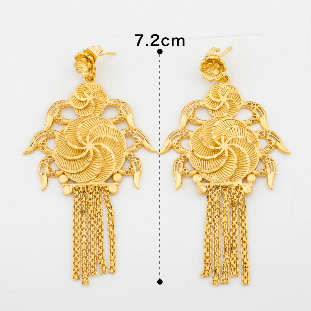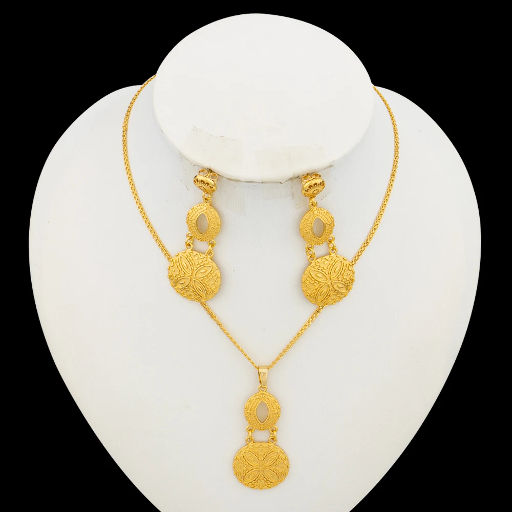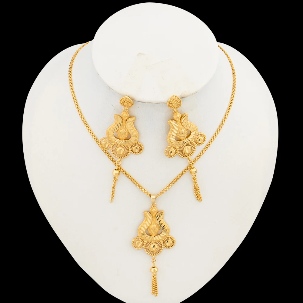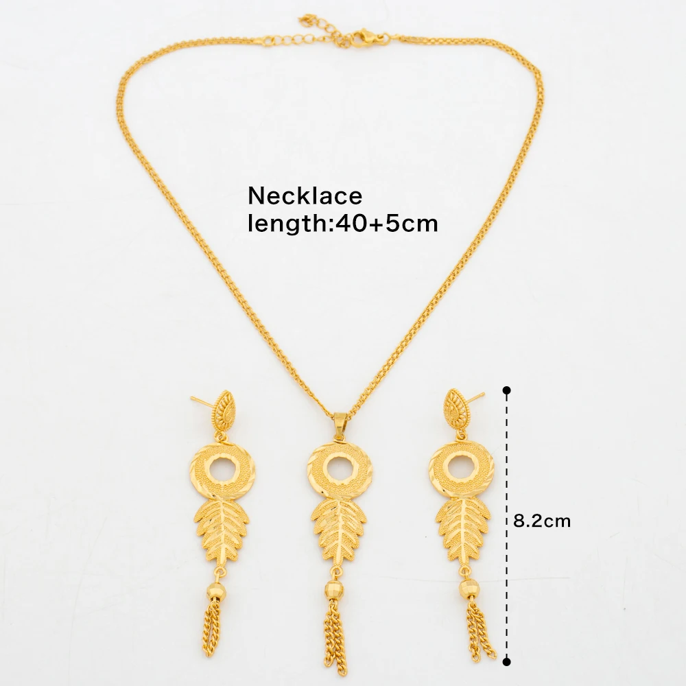 Italian Earrings and Necklace Jewelry Set for Women Gold Color Drop Earrings and Pendant African Chain Necklace Jewelry Set Gift