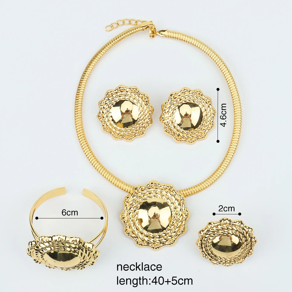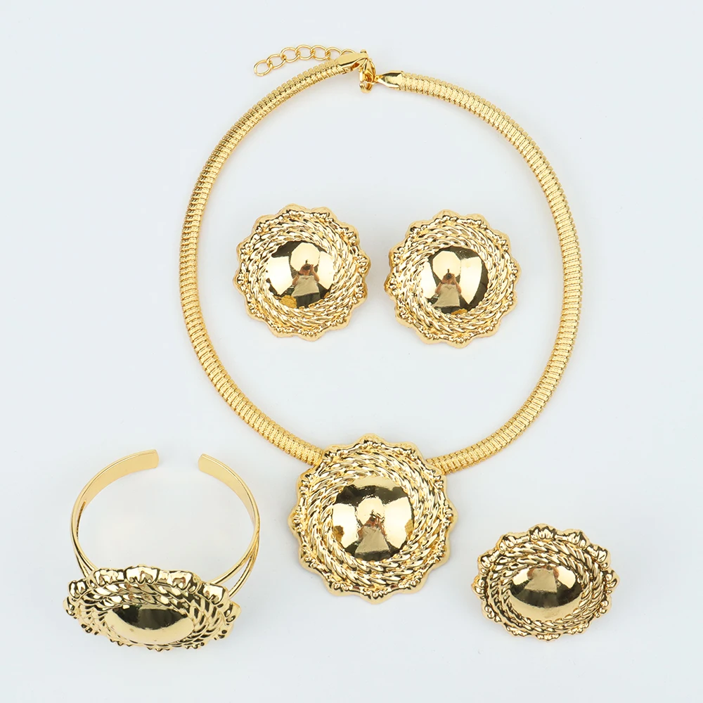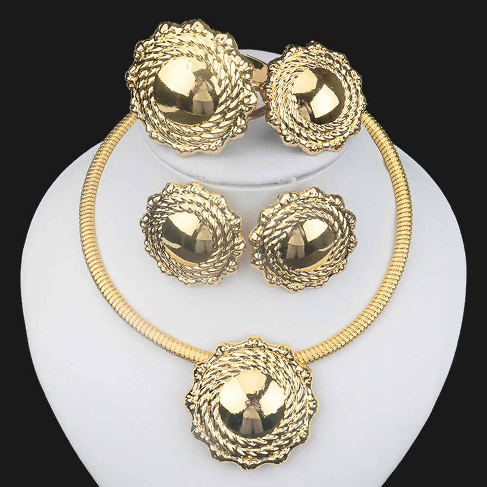 Italian Gold Plated Jewelry Sets Wedding Dubai Choker Necklace Bracelet Earring Ring Nigerian Bridal Set African Jewelery
