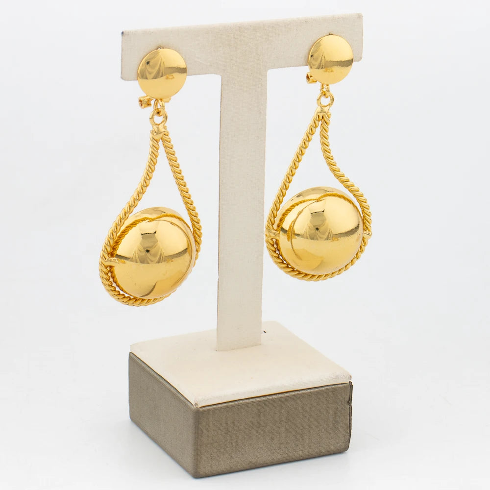 Italian Weddings Party Jewelry Set for Women 18k Gold Color Big Necklace Beads Earrings with Bangle Ring 4Pcs Set for Engagement