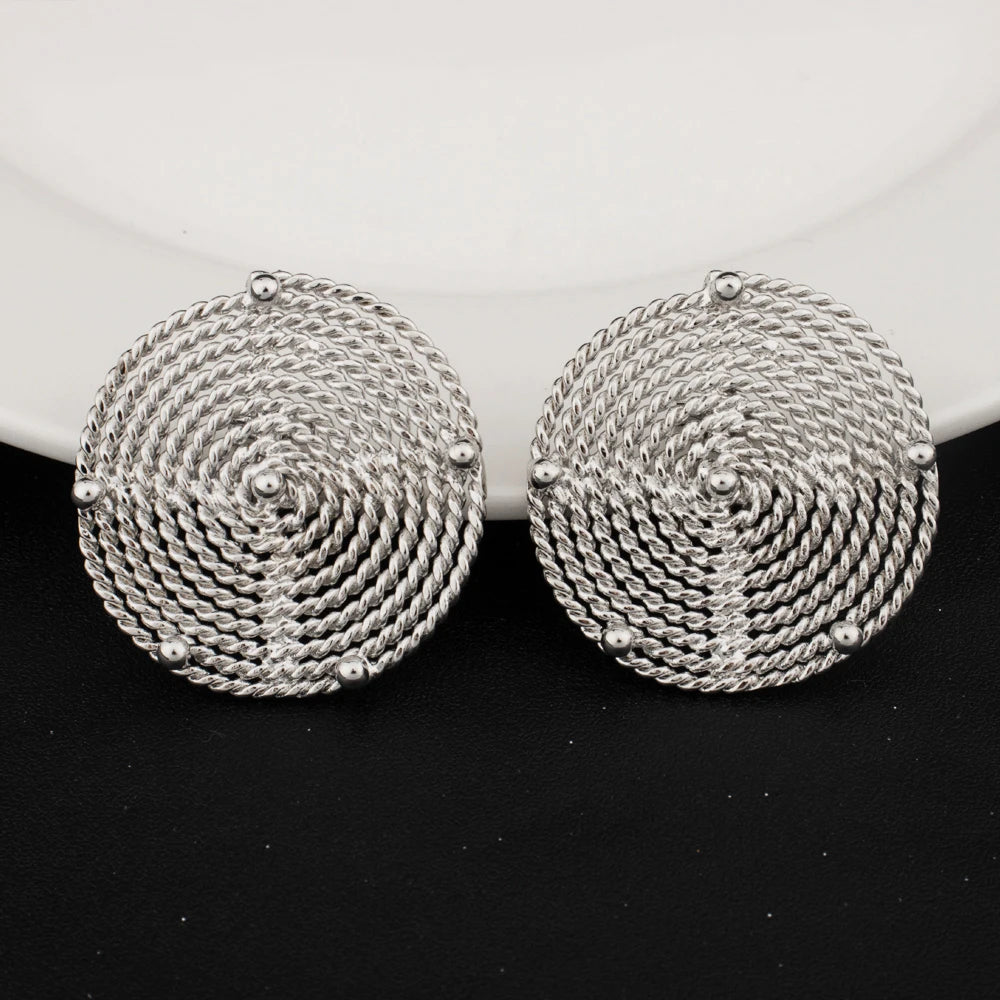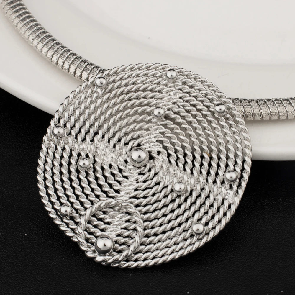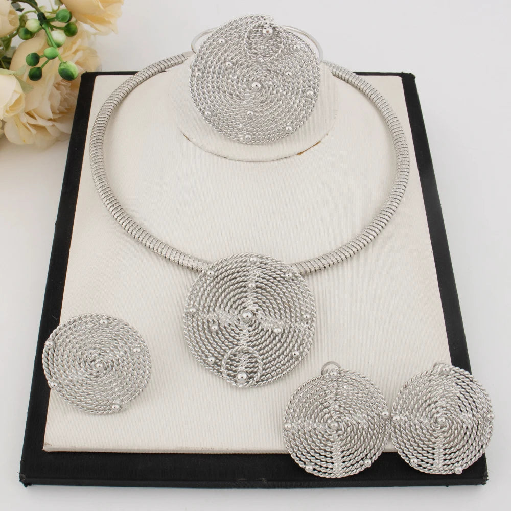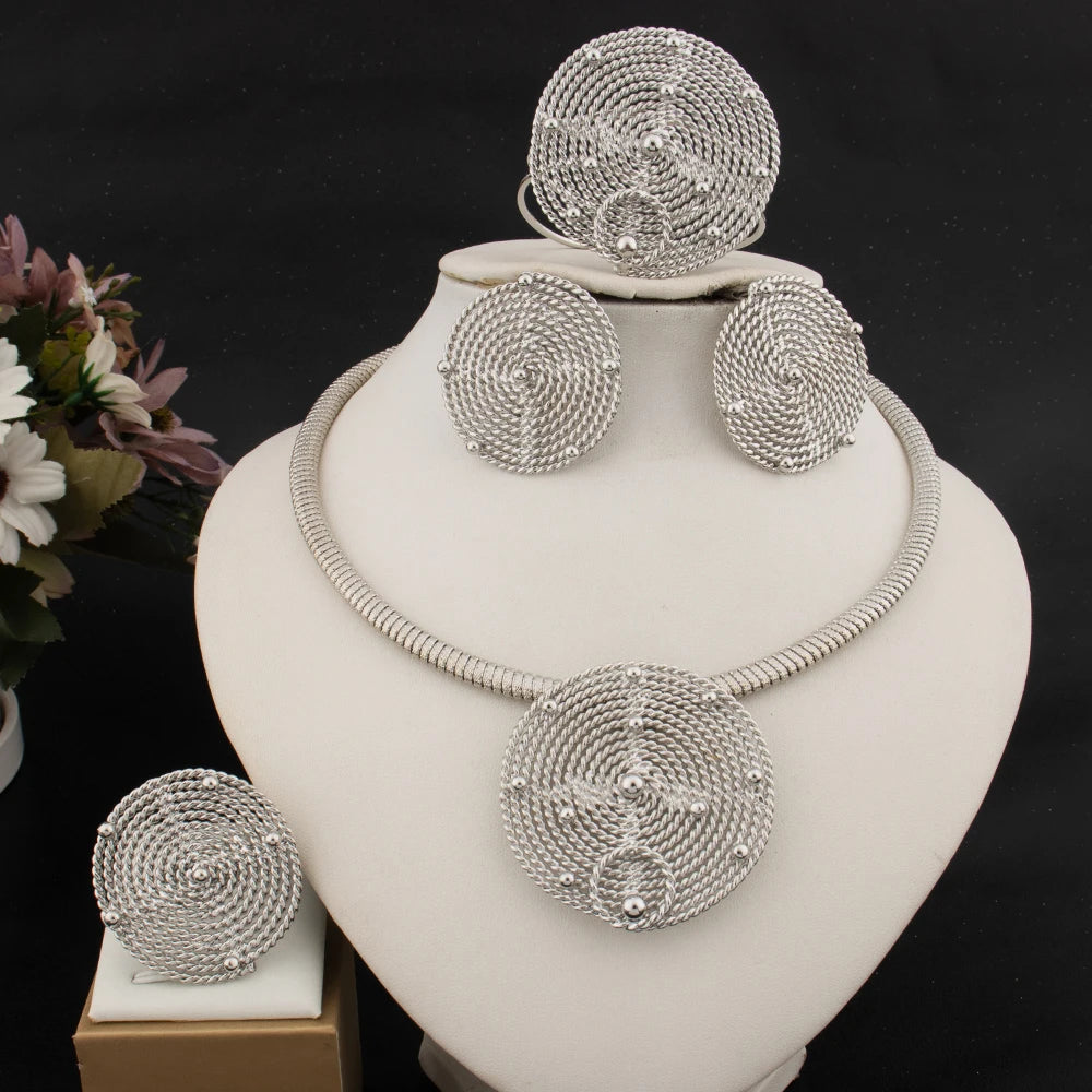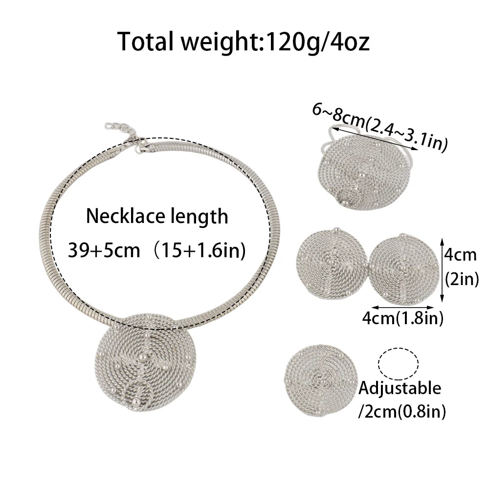 Large Round Earrings Collar Necklace Silver Color Bangle Ring Set for Women America Exaggerated Jewelry Set For Party Dressing