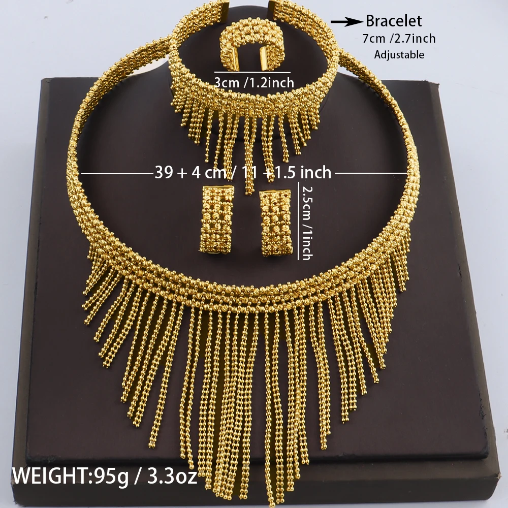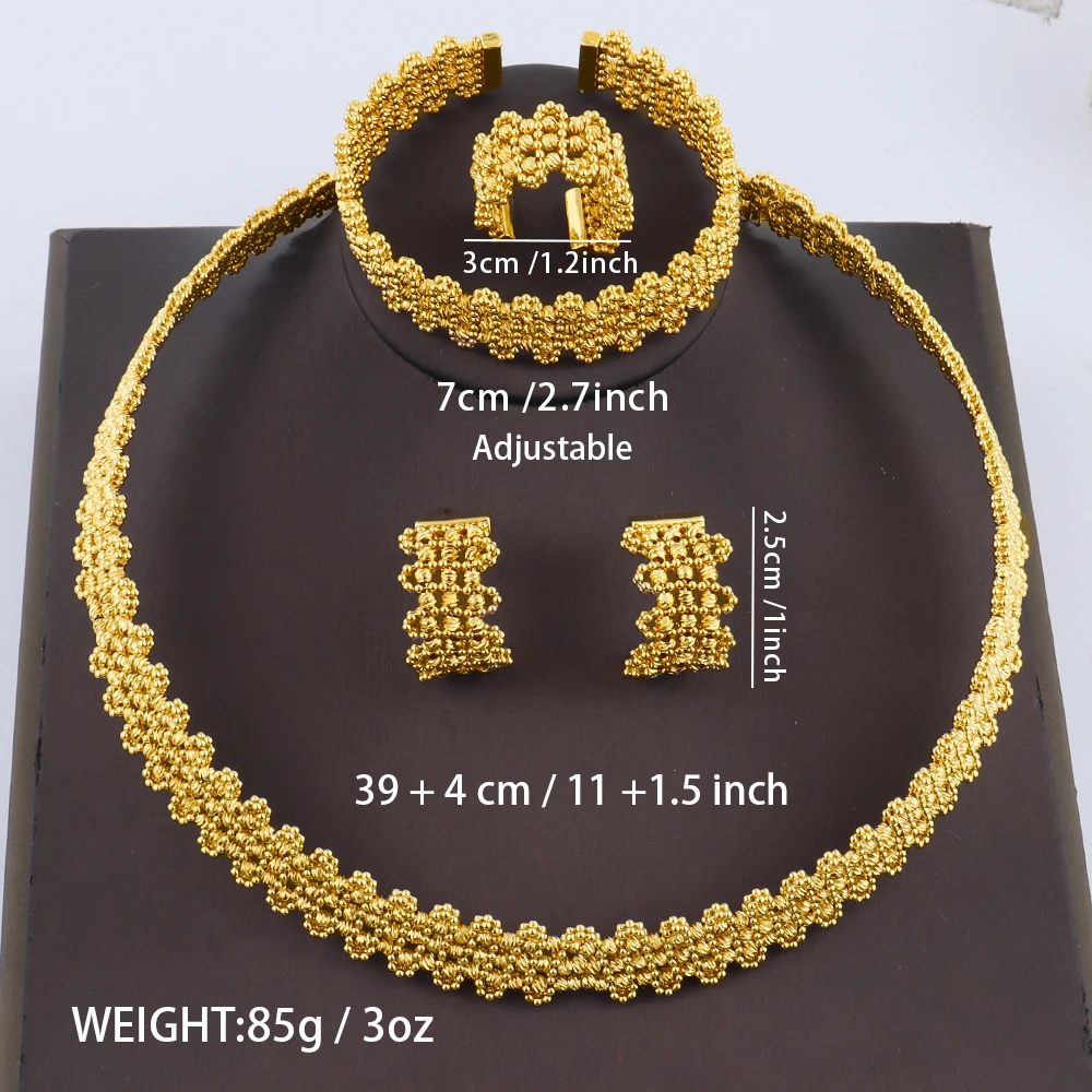 Luxury 24K Gold Plated Jeweler Necklace Bracelet Ring Earrings Set for Women Bride Charms Jewelry Set Gift for Party Wedding