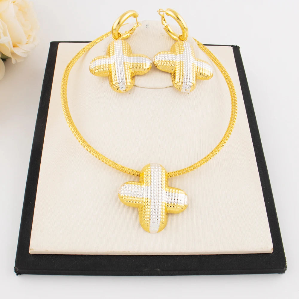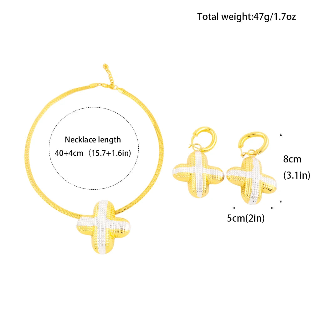 Luxury and Chunky Dual Color + Shape Jewelry Set for Women Nigeria High Quality Earrings Choker Necklace Gift for Party Daily
