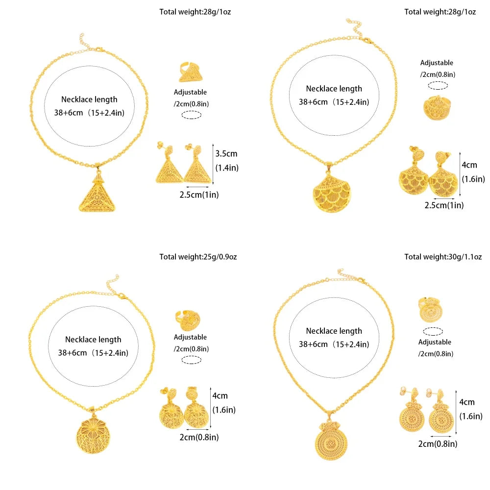 Material: Metal,Gold Plated Earring Ring and Necklace
