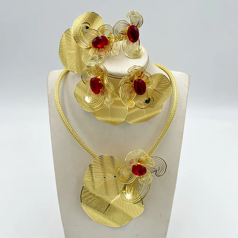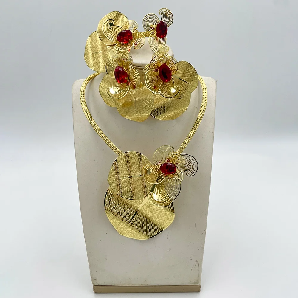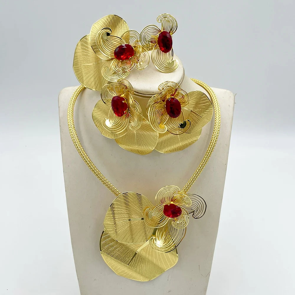 Luxury Crystal Design Jewelry Set for Women Bohemia Floral Design Necklace Drop Earrings Weddings Engagement Bracelet Ring Set