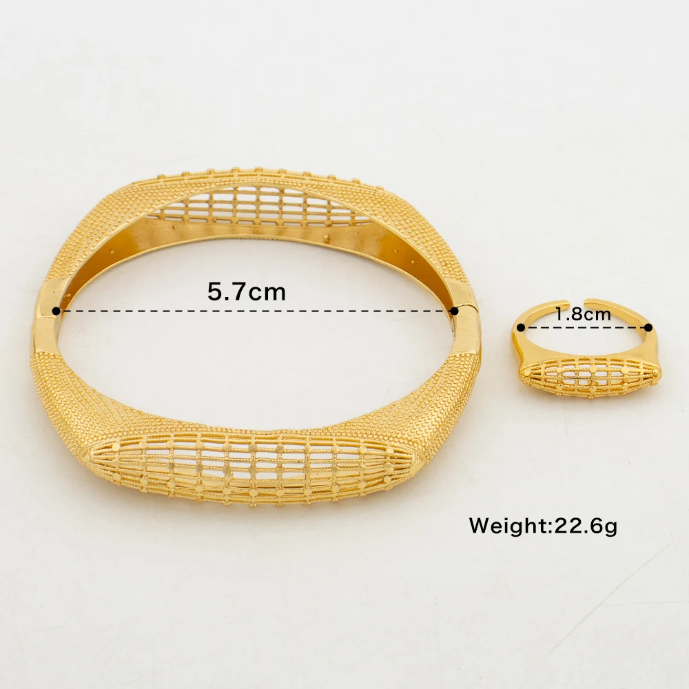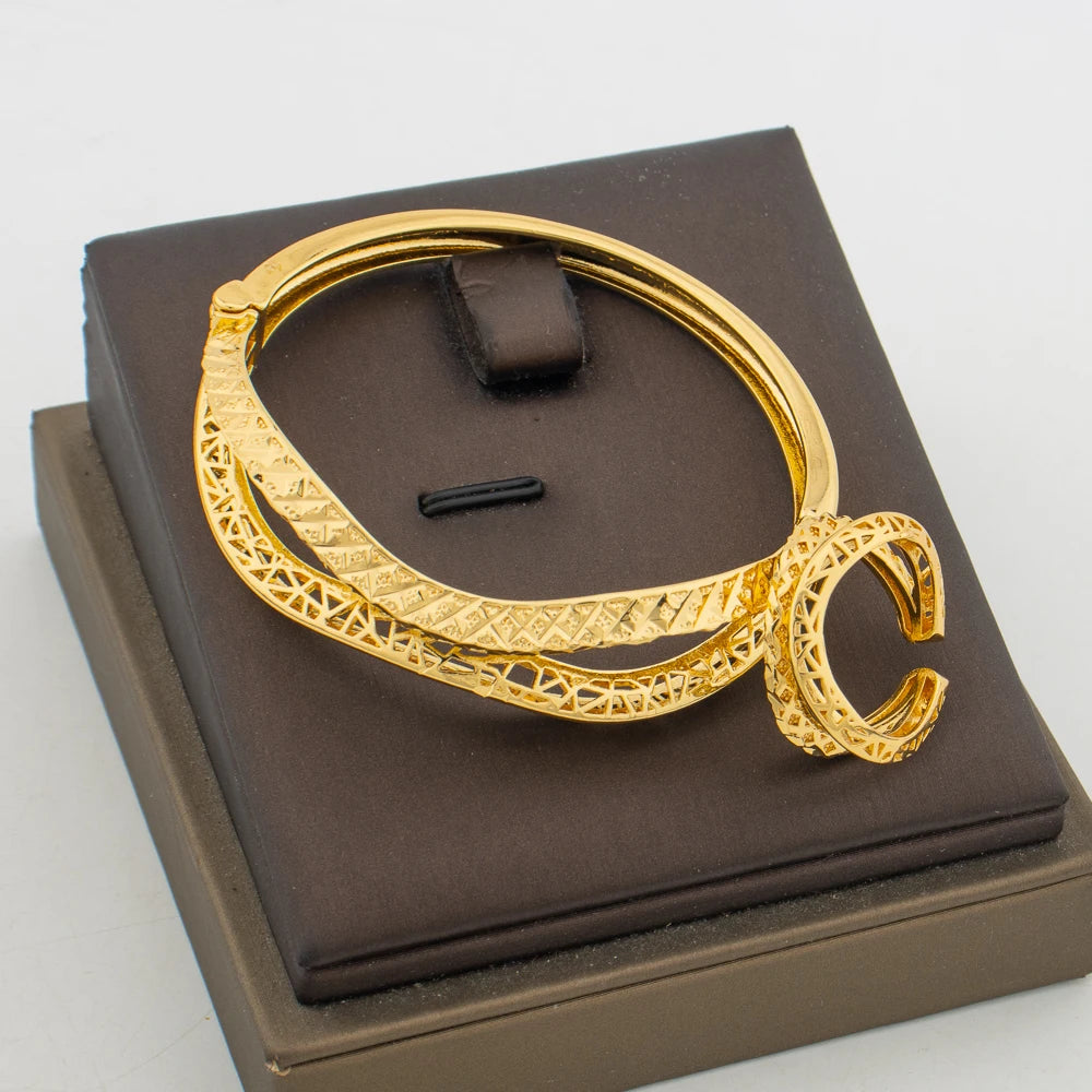 Luxury Gold Color Bangle Ring Set for Weddings Classic Design Hand Bangle and Finger Ring Set for Anniversary Party Jewelry Set