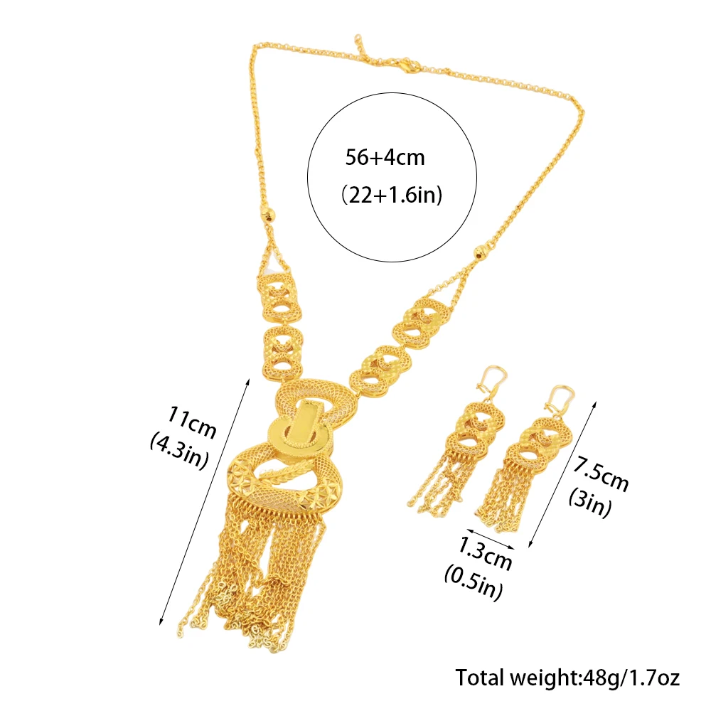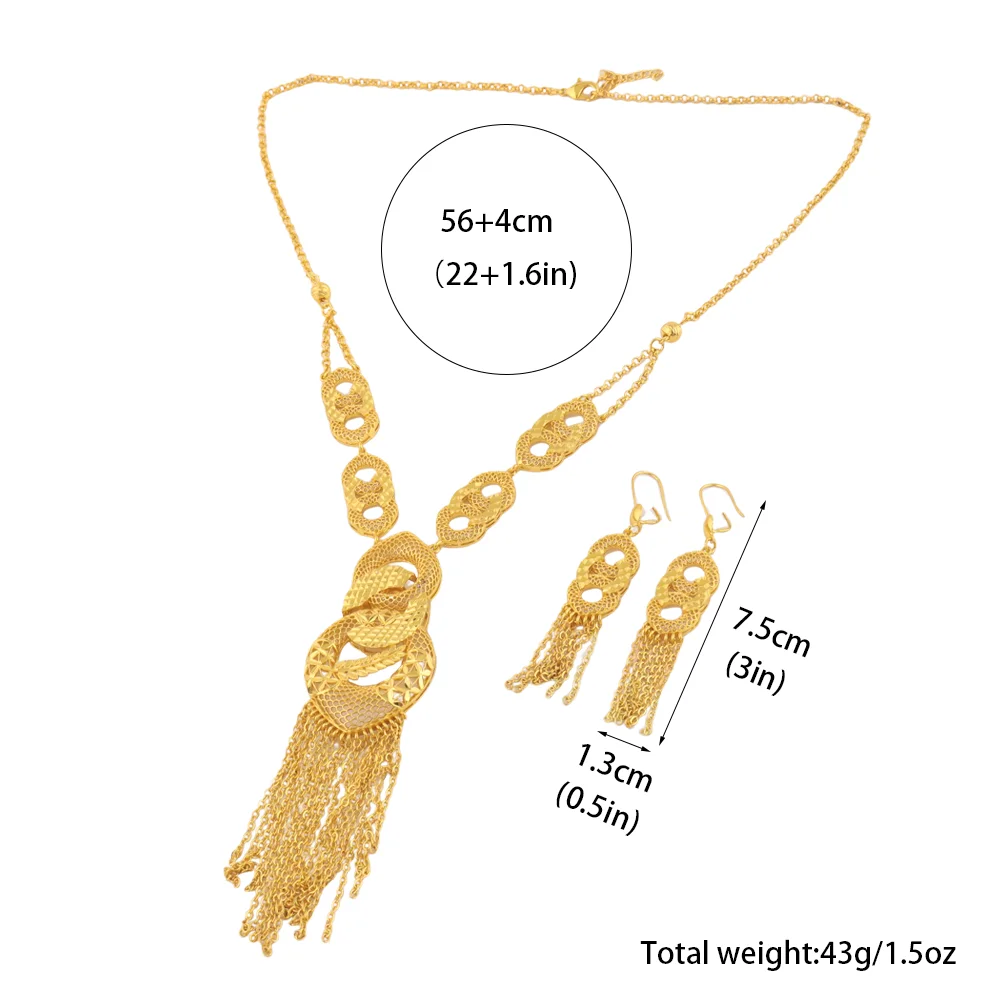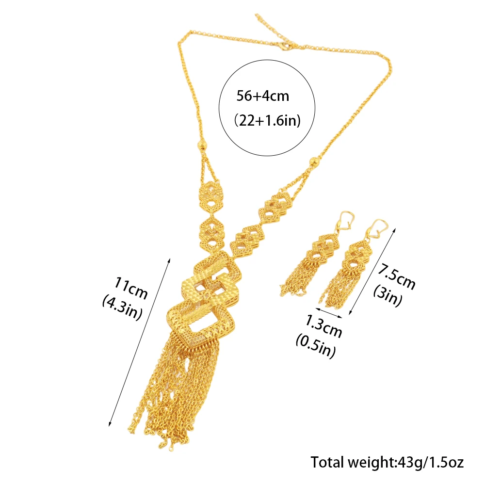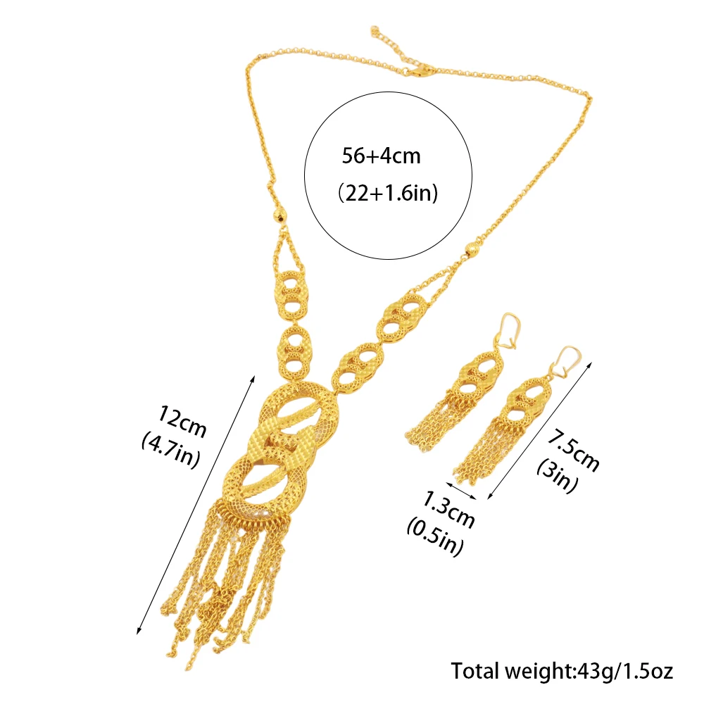 Luxury Gold Plated Long Chain Necklace Earrings Set for Women India Noble Nigeria Bride Jewelry Gift for Wedding Party