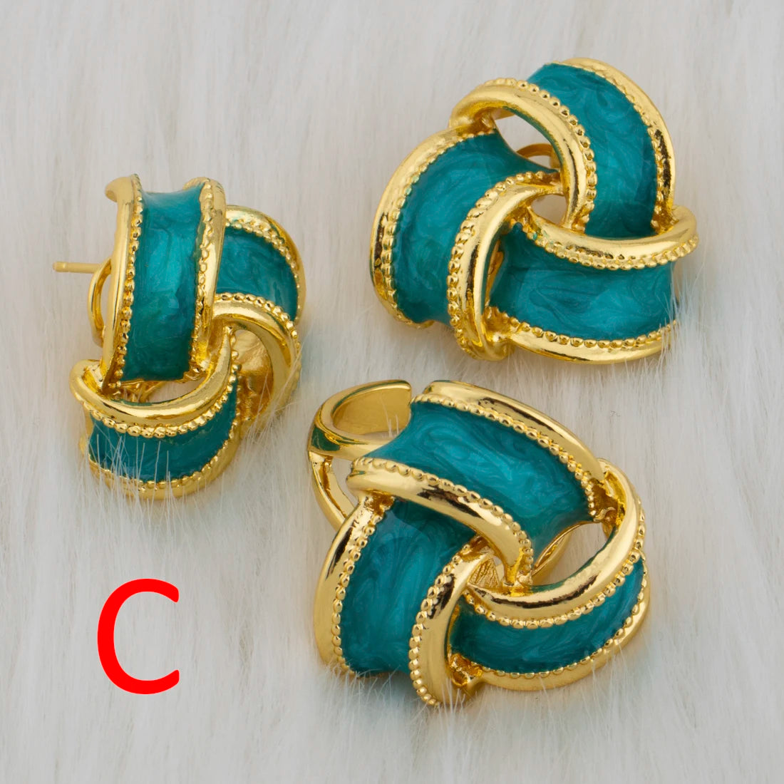 Mushroom Shape Women Earrings Ring Congo Africa Luxury Jewelry Set Advanced Gold Plated Ring Banquet Women's Day Wedding Party