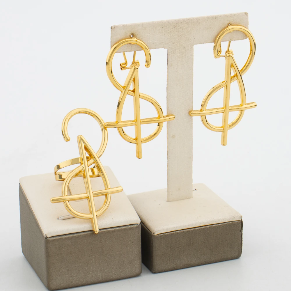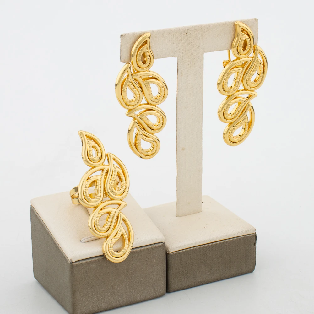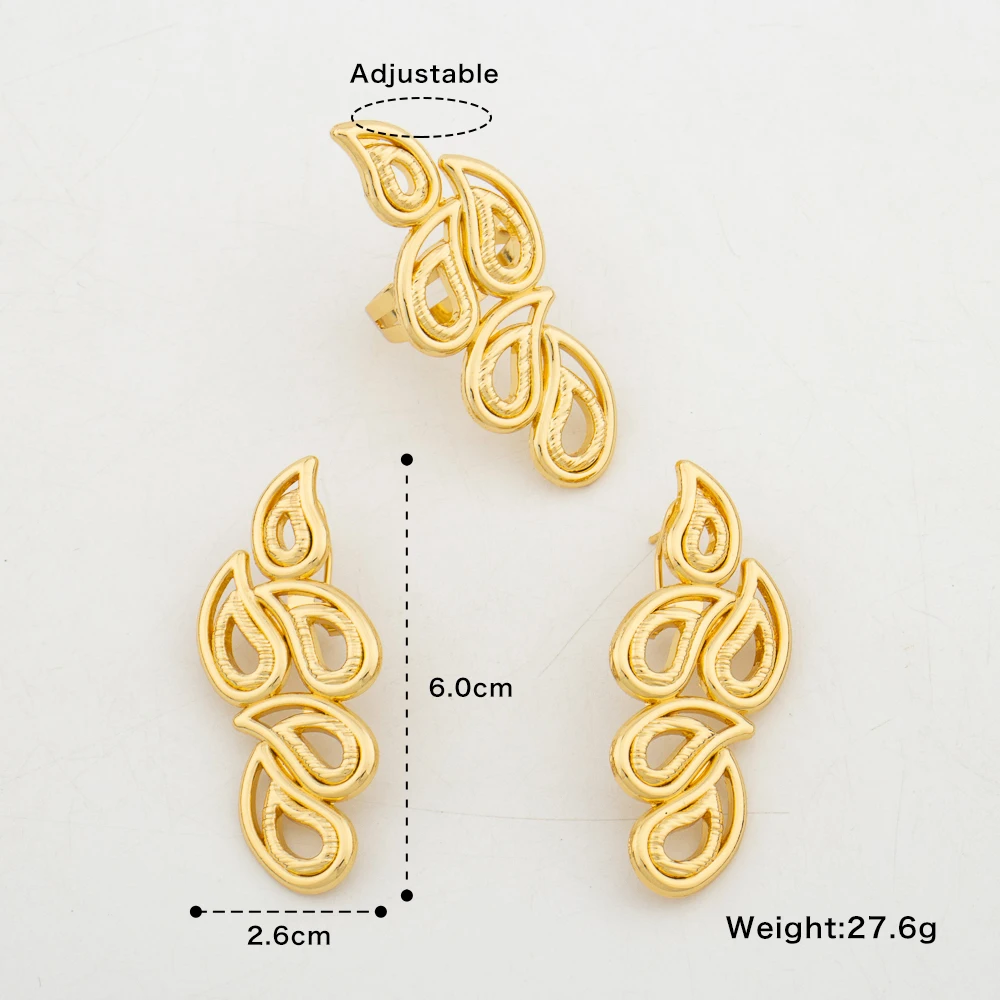 New Design Jewelry Set for African Large Hollow Out Earrings with Choker Necklace Finger Ring Set for Weddings Anniversary Gift