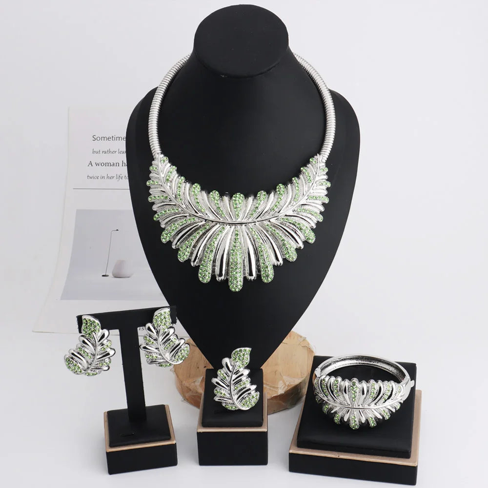 New Fashion Luxury Africa Dubai Necklace Earrings Ring Bangle For Women Zircon Jewelry Sets For Bridal Party Wedding Full