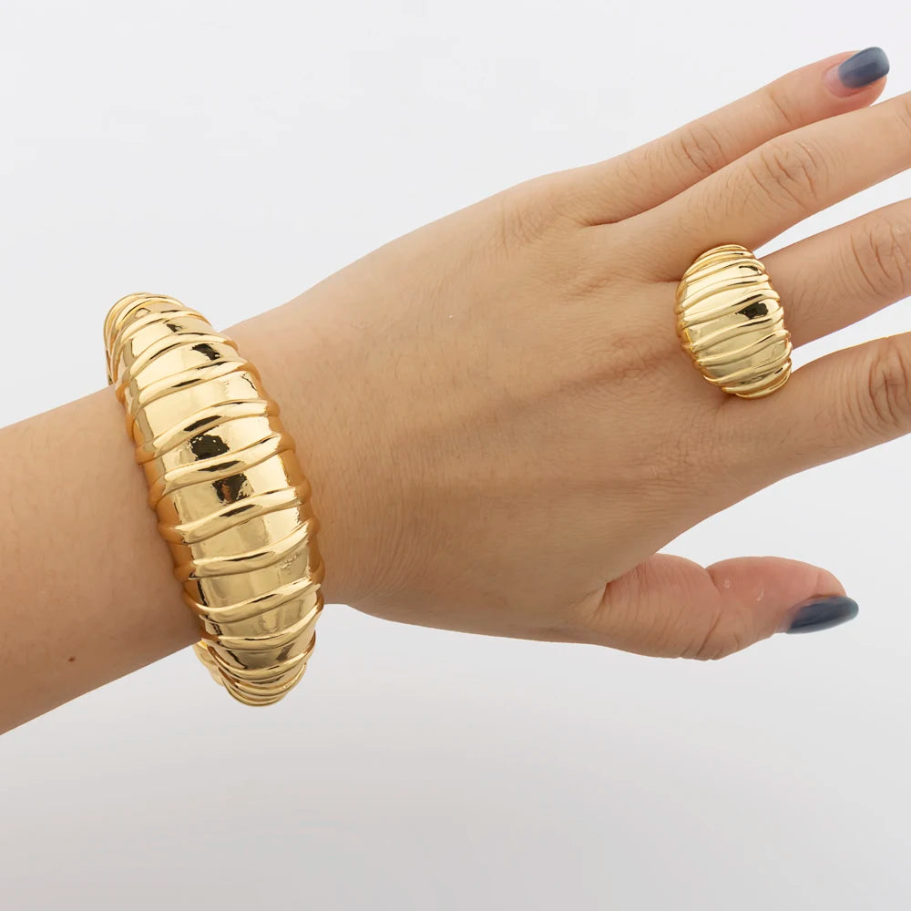 Color: New Gold Plated Ring Bracelet Earrings Fashion Women Jewelry