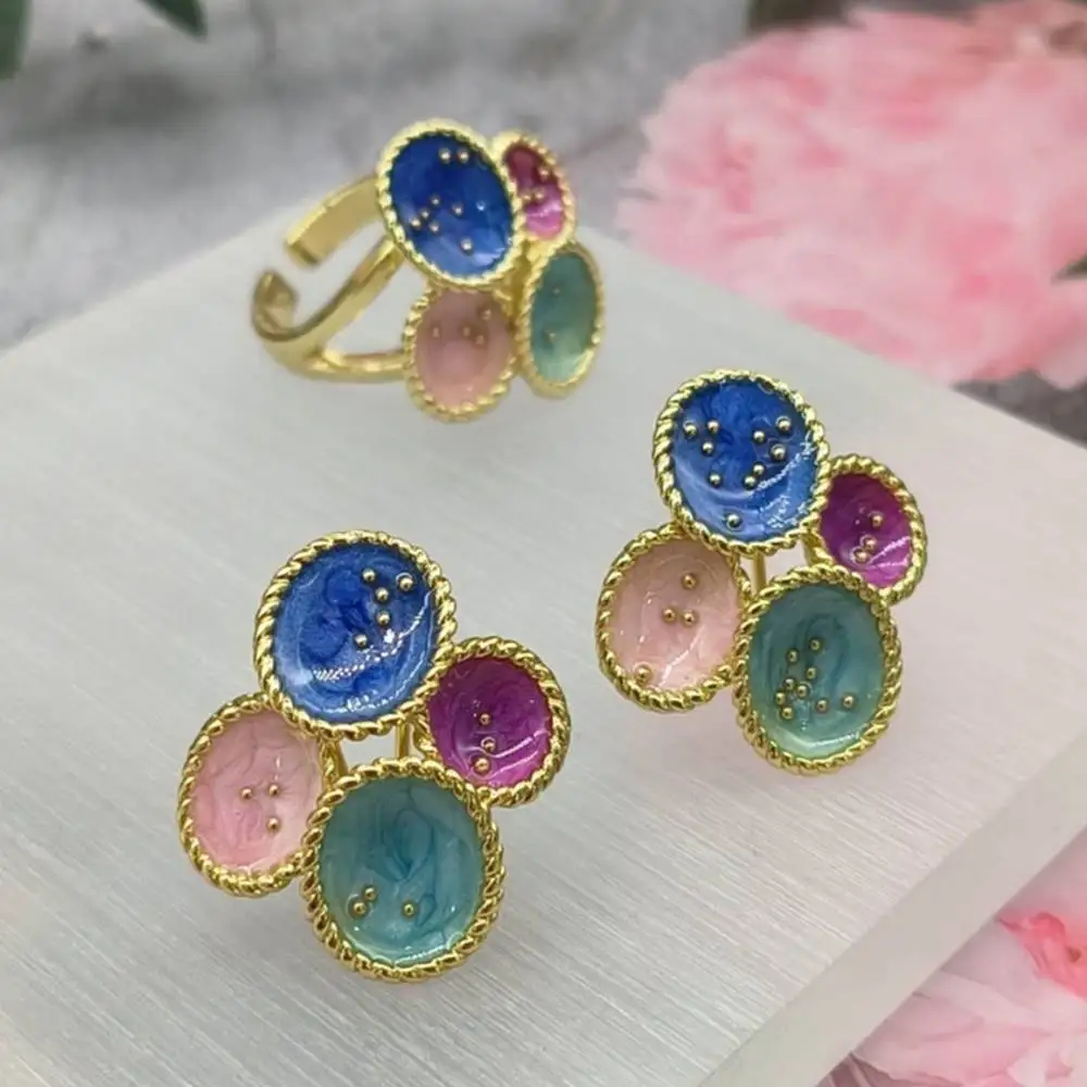 Nigeria Ring Earrings Jewelry Set For Wedding Party Gold Color Women Ring Luxury Exclusive Design Girl Earring For Gift
