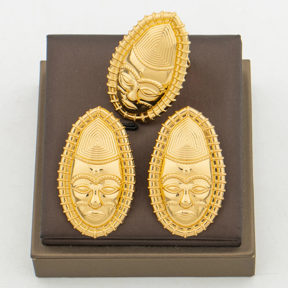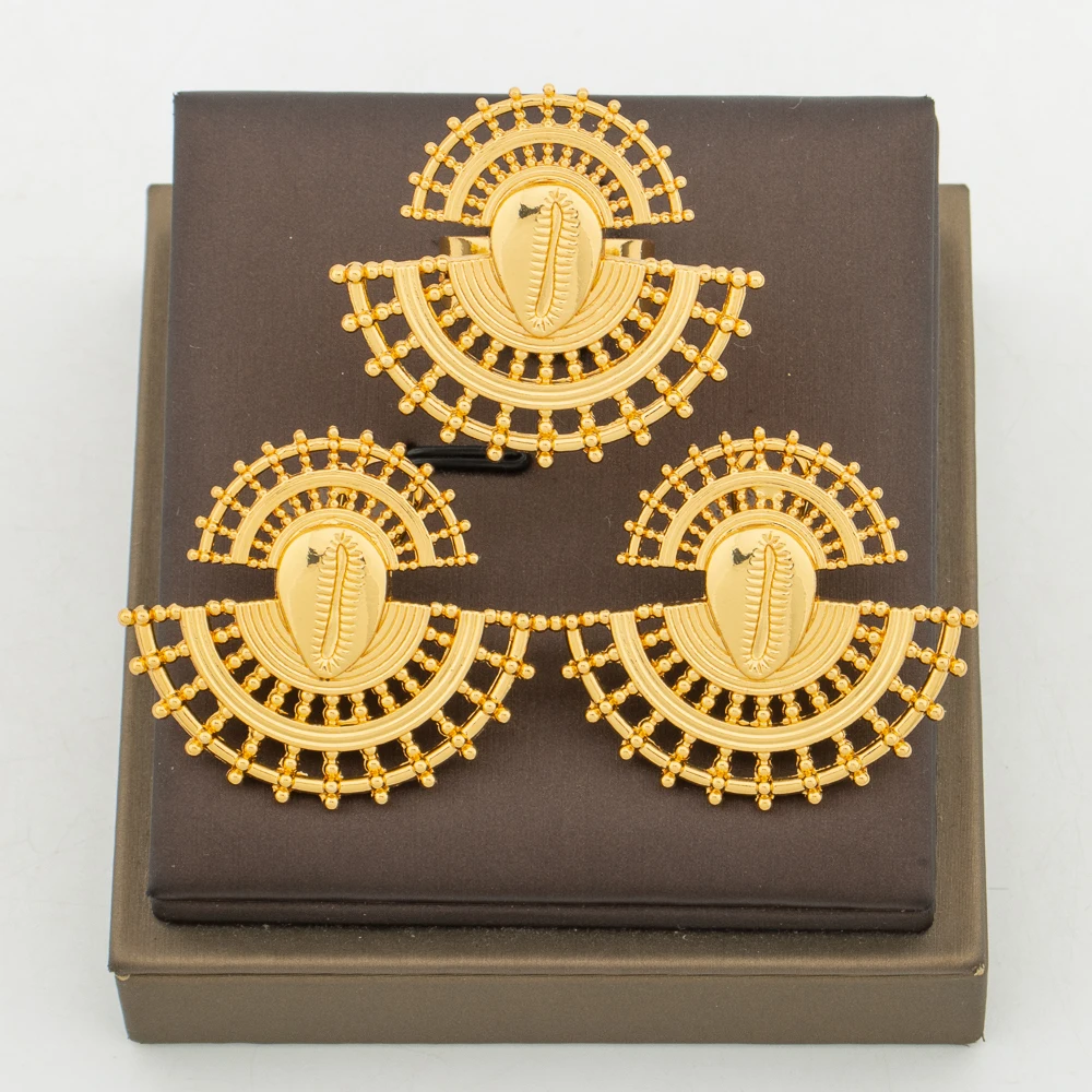Nigerian Gold Color Jewelry Set for Weddings Women Elegant Clip Earrings and Finger Ring 2Pcs Set for Engagement Party Accessory