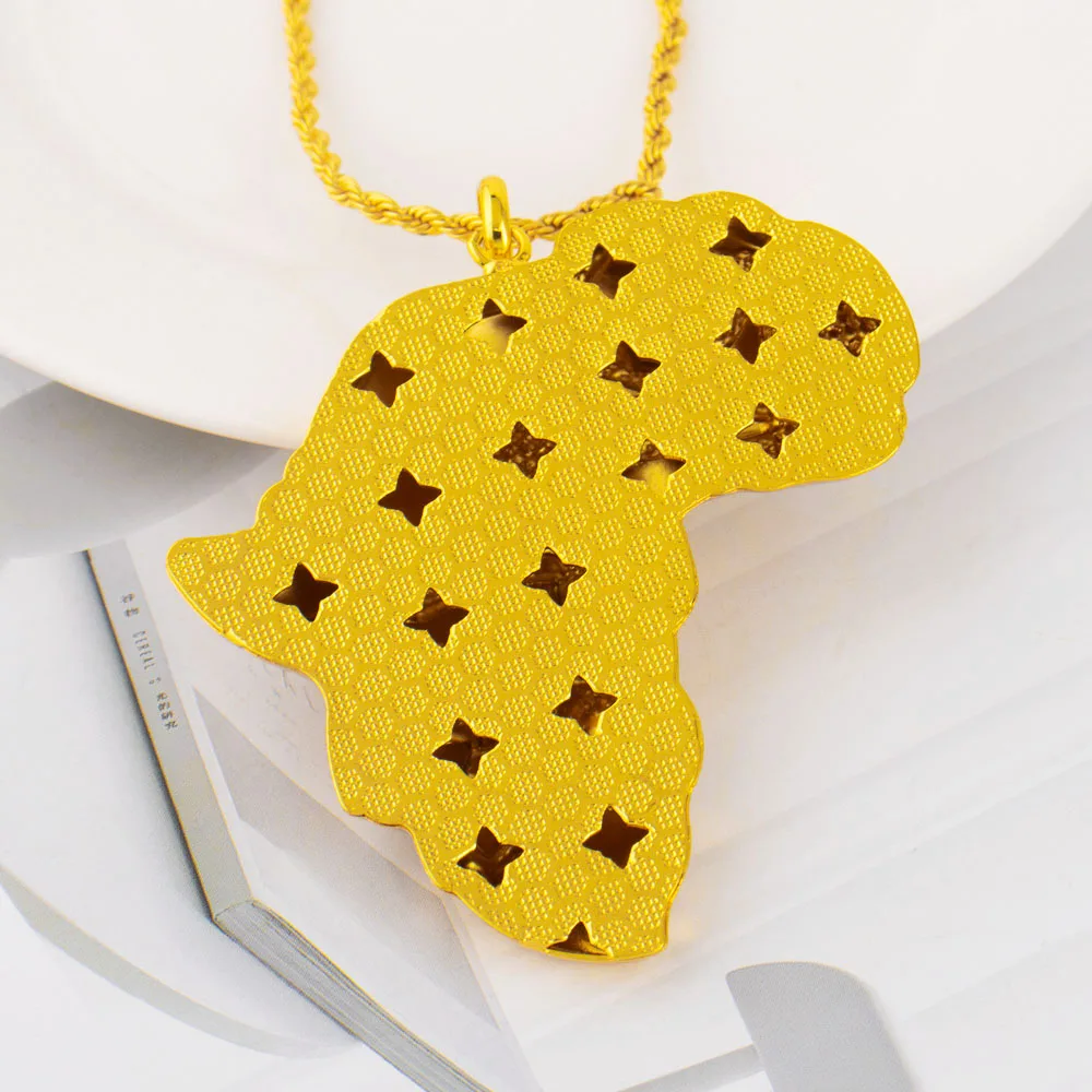 Plated Africa Map Pendant Necklace – Hip Hop Jewelry for Women & Men, Luxury Stainless Steel Copper Chain, jewellery w