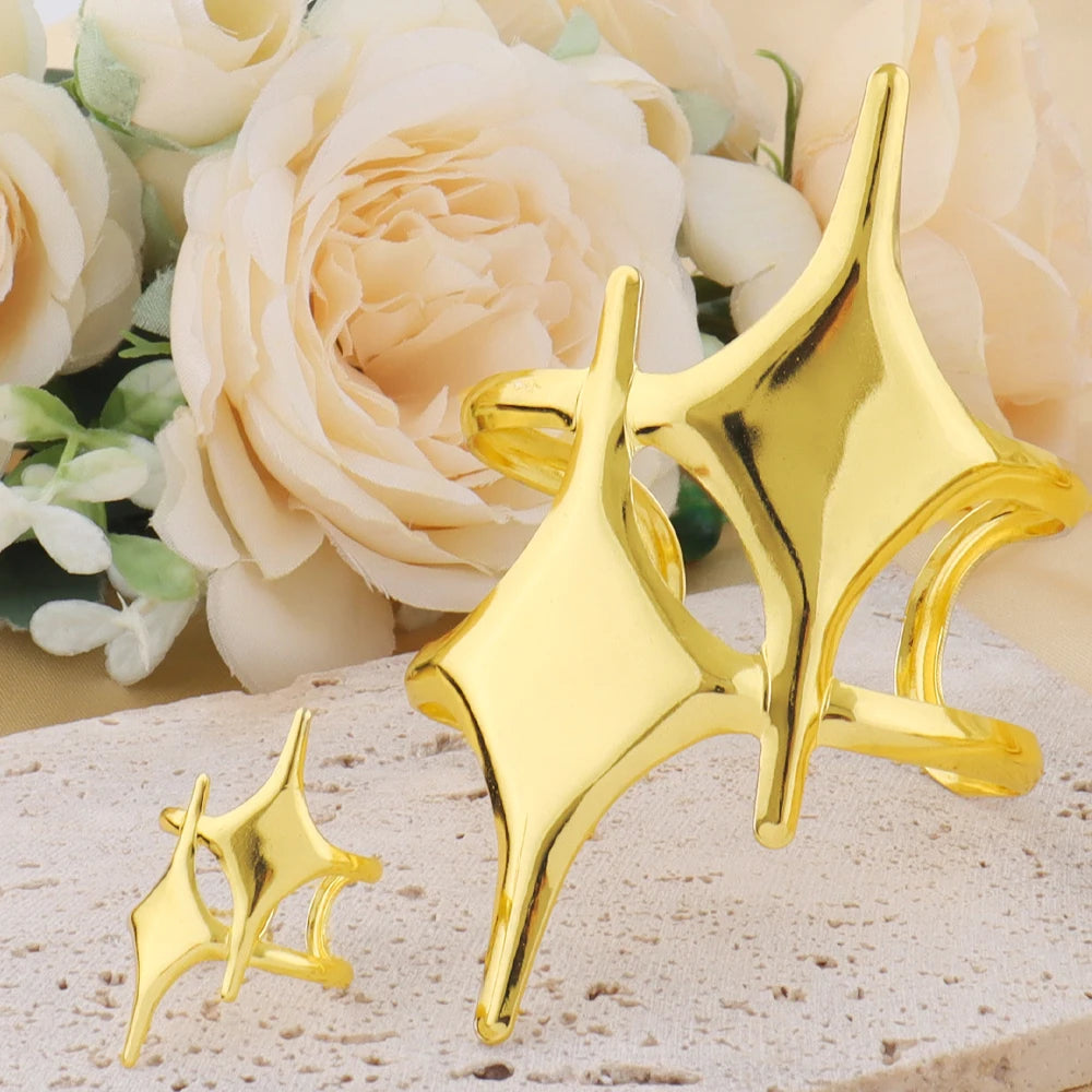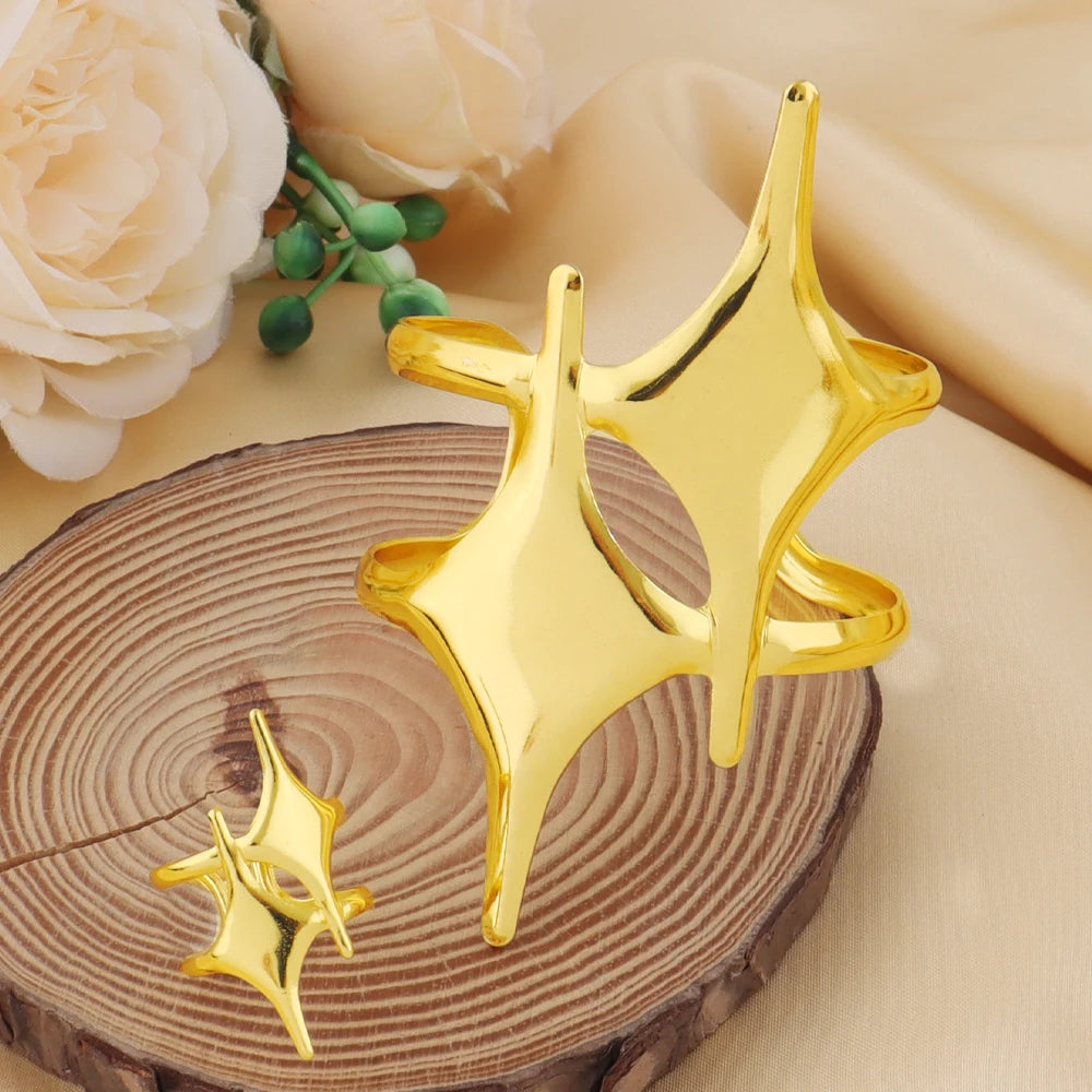 Punk Gold Stainless Steel Star Open Ring & Bracelet Set Unisex Hip-Hop Fashion Jewelry Gift for Women Men Adjustable Stackable S