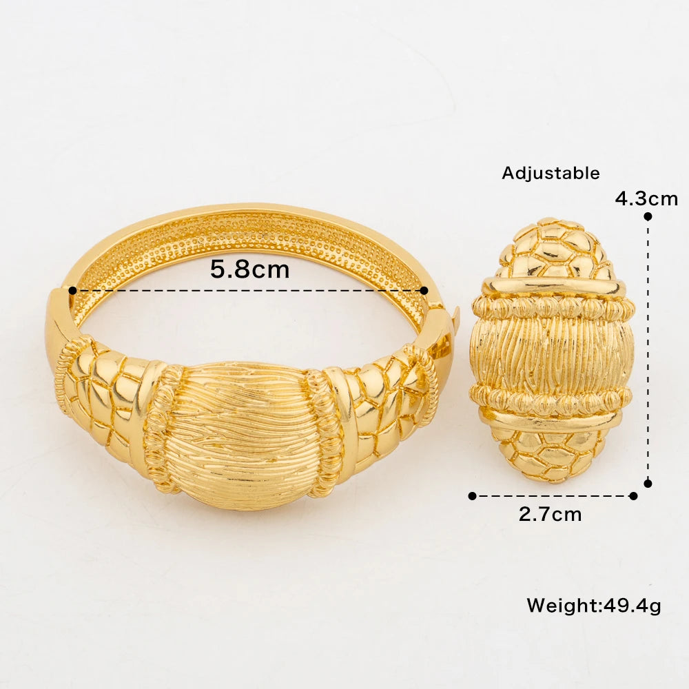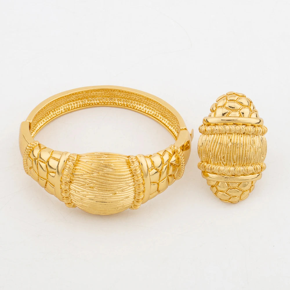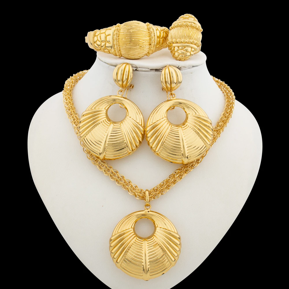 Trend Bridal Jewelry Set for Women Dangle Earrings and Pendant Necklace Gold Color Bangle Ring Set for Engagement Party Jewelry