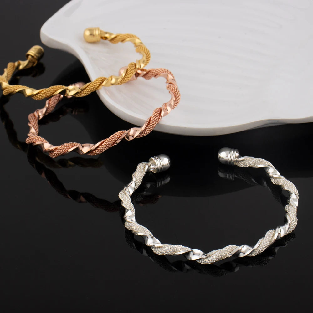 Trendy Coppr Open Bangles Charms Line Bracelet For Europe and America Women Fashion Adjustment Size Jewelry For Party Wedding