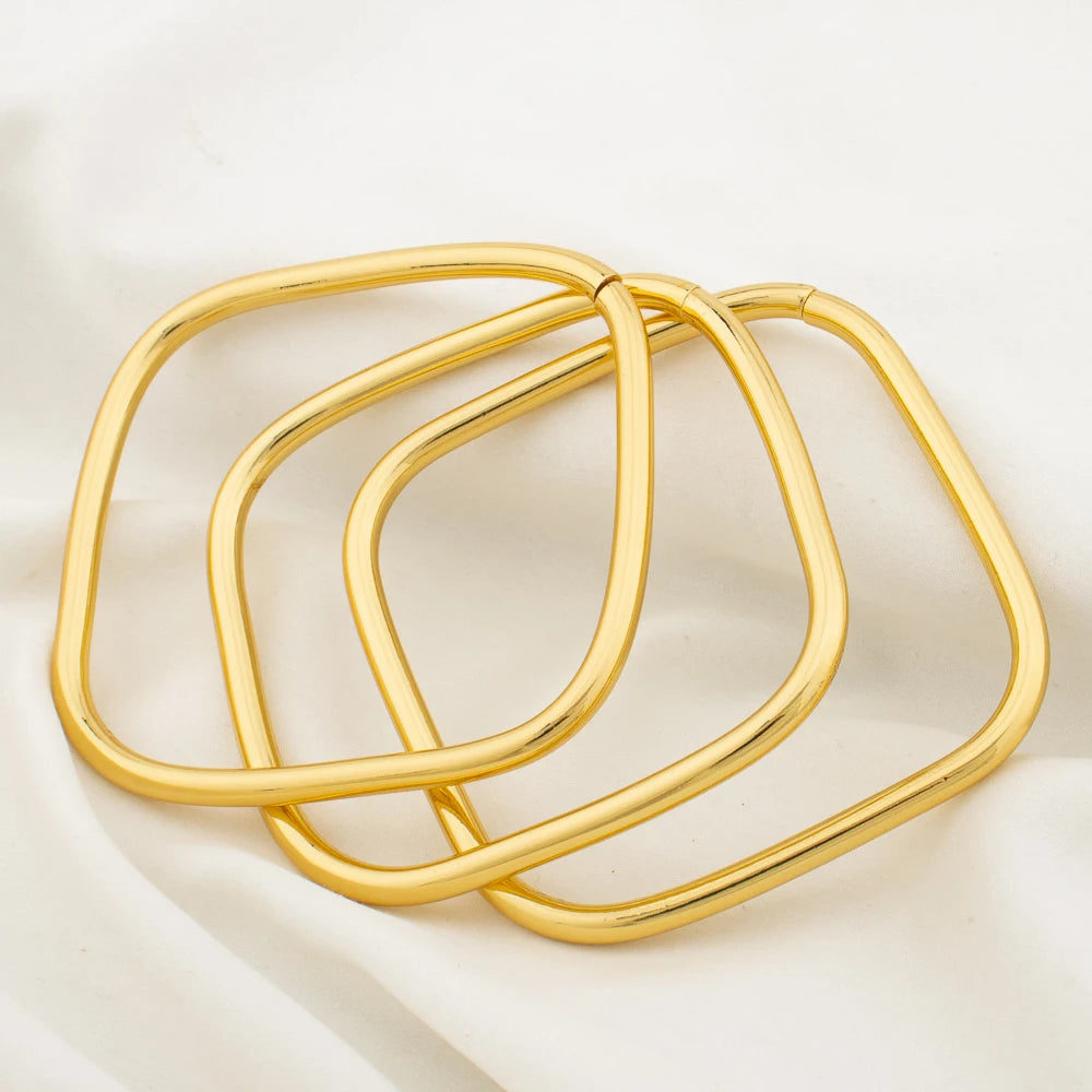 Trendy Square Bangles for Women Stainless Steel Geometry Dubai Gold Color Charm Bracelets Female Wedding Jewelry Accessories