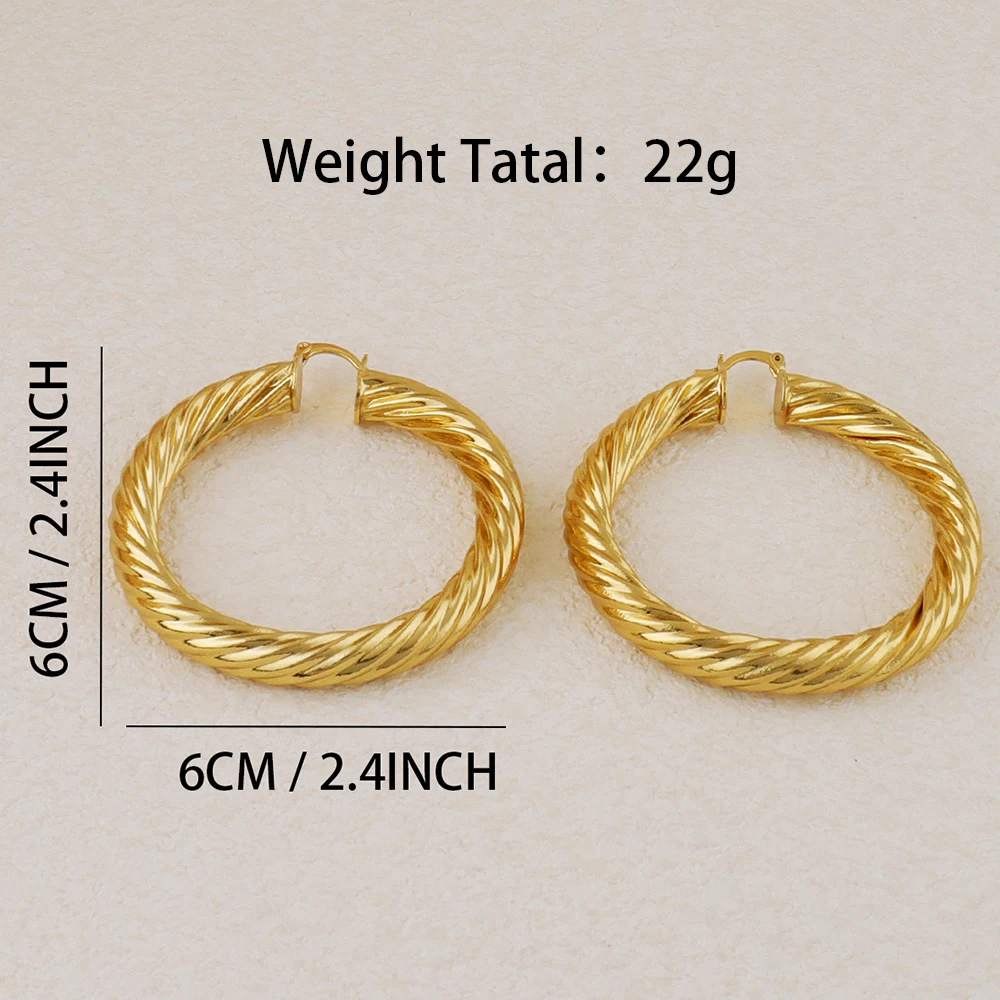 Vintage Twisted Hoop Earrings 6CM African Big Earrings for Women Gold Plated Stainless Steel Party Jewelry Accessories
