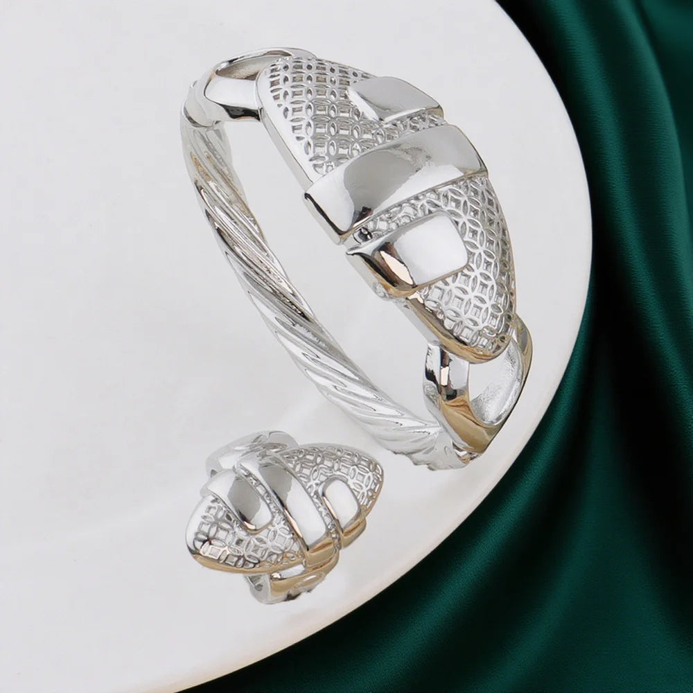 Women Charm Bracelet 18k Gold Color Bracelet Rings Jewelry For Women Wedding Jewelry African Party Gift Nigerian Jewellery