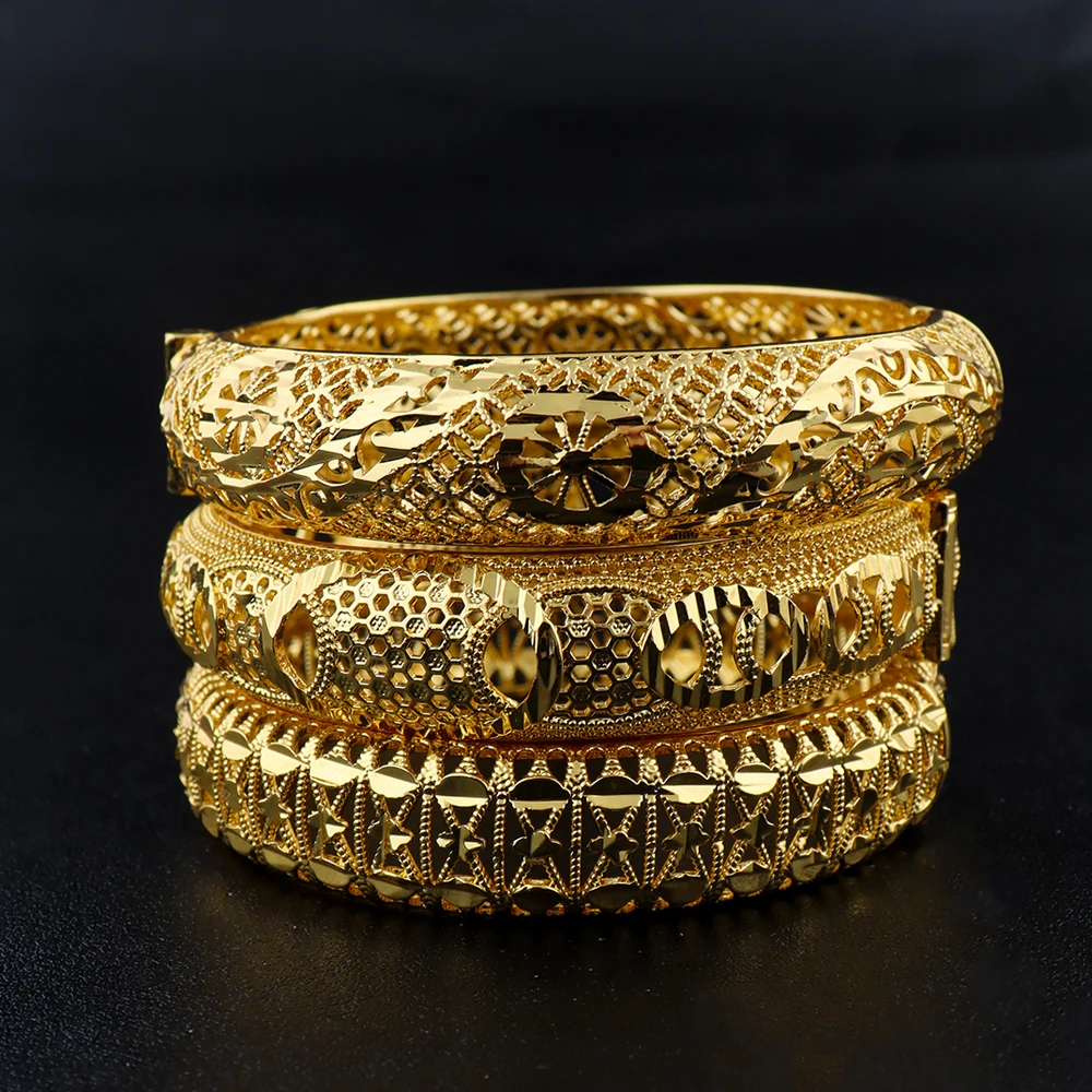 Goldlen Middle East Copper Bracelets Dubai Women's 24K Gold Color Fashion Jewelry Ethiopian Bride Wedding Hawaiian Gift