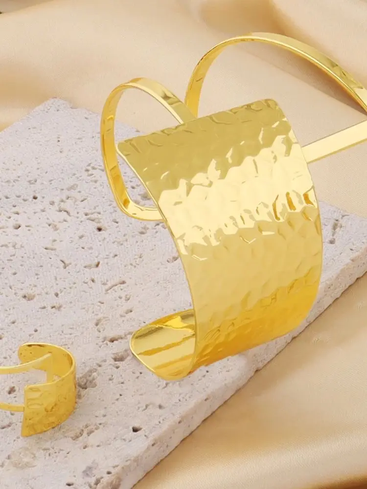 Women Girls Adjustable Open Cuff Bracelet, Exaggerated Hip-Hop Wristband, Unique Fashionable Streetwear Jewelry Gift, Trendy Wid