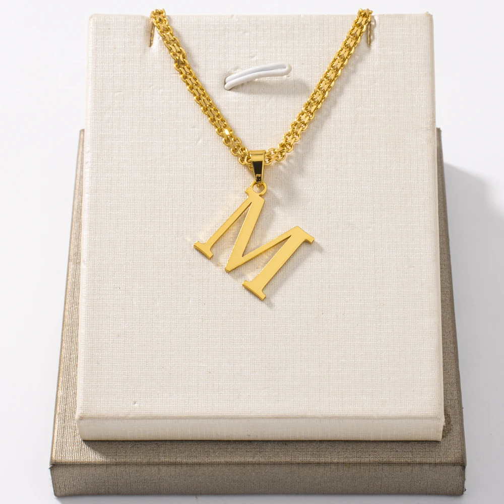 Material: Metal,Fashion Stainless Steel Alphabet Initial Necklace