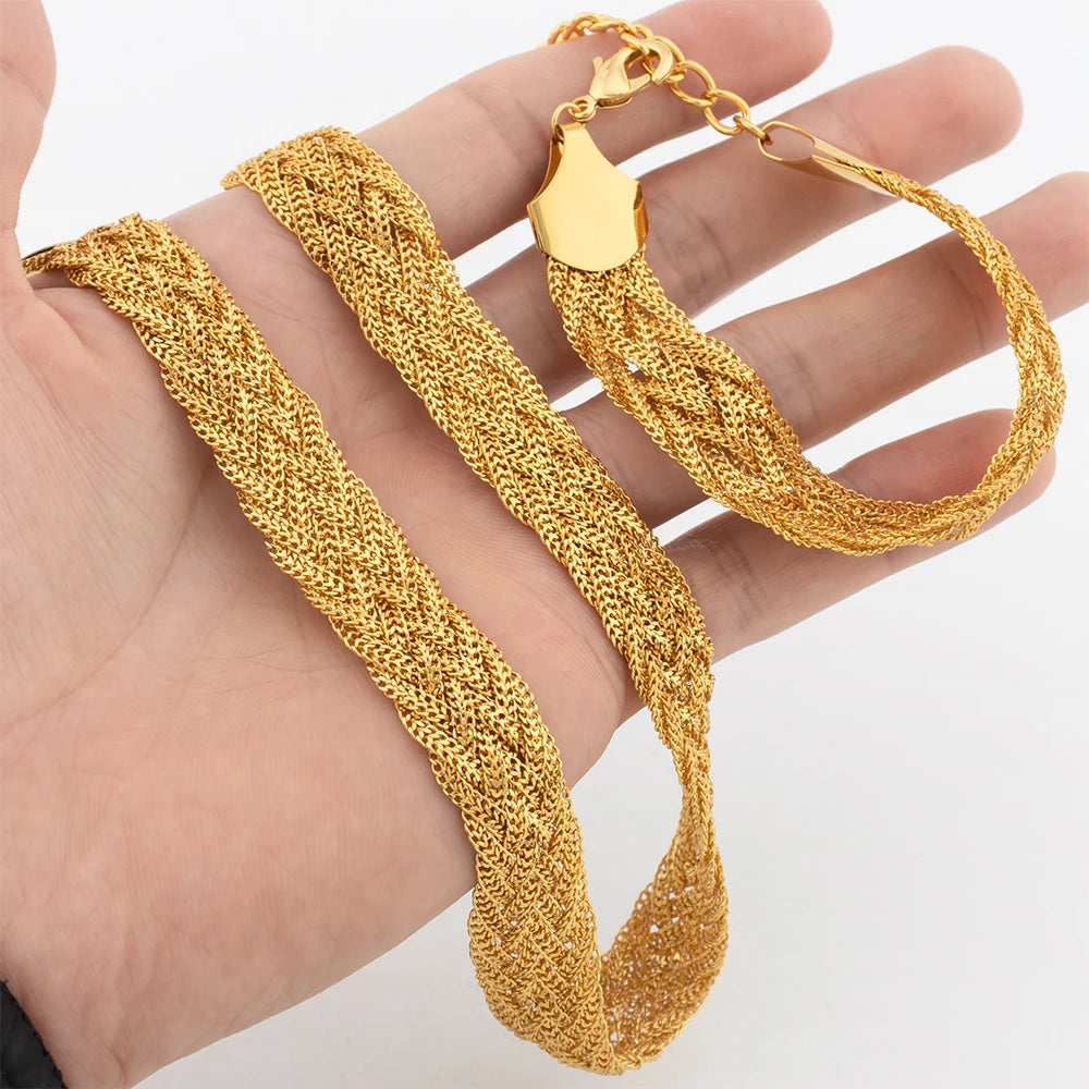 YM 10MM Woven Chain for Women Gold Plated Necklace and Bracelet 40CM Hollow Chain Dubai Africa Luxury Punk Jewellery Accessaries
