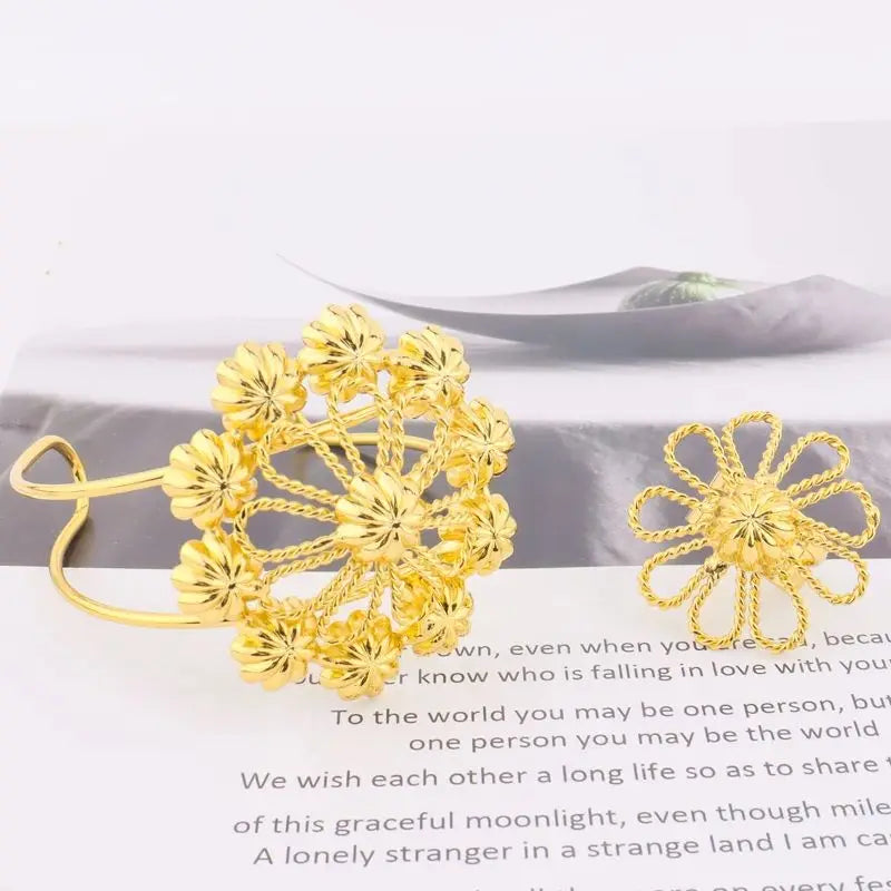 YM 2025 Gold Color Hollow out Flowers Shape Jewelry Sets Charming Earrings Bangle Necklace and Ring Sets Gift For Wedding