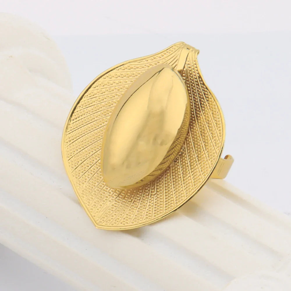 Dubai Women Gold Color Big Leaves Shape Jewelry Sets Luxurious Earrings Bangle Necklace and Ring Accessories Gift For Party